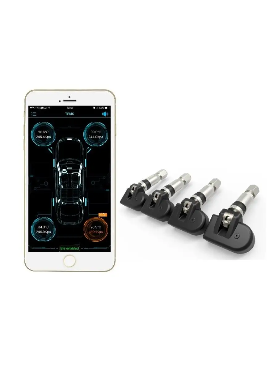 Управление системой осуществляется через бесплатное приложение BLE TPMS. Приложение доступно для установки в App Store (iPhone, ipad, для iOS) и Google Play (для Android).